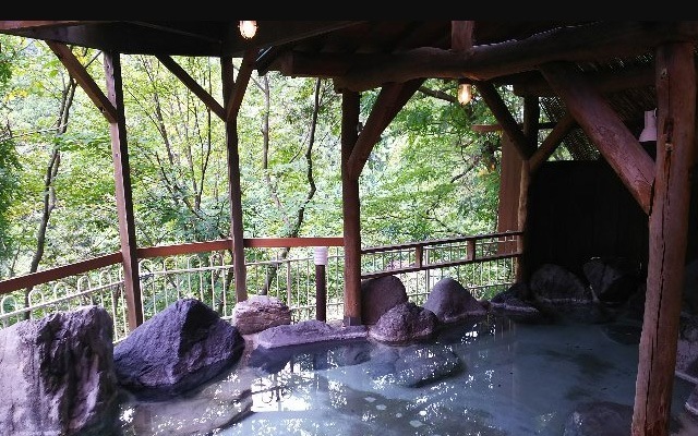 | お風呂 | 2017年にリニューアルした新しいお風呂でキレイな作りで窓からは渓流と自然な木々が癒やしてくれます。 ・本館 大浴場(内湯:万葉の湯) ・本館 露天風呂 ・民芸館 大浴場(内湯:大江戸の湯) ・民芸館 露天風呂 |