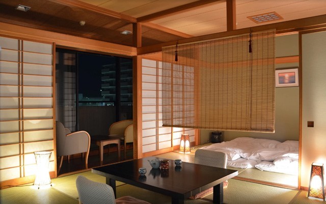 | 客室 | 全室2間続きのお部屋でゆったり広々使える。部屋の位置によって富士山が見れます。 ・和室2間(6畳+6畳) ・特別室(10畳+8畳) ・和洋室 |