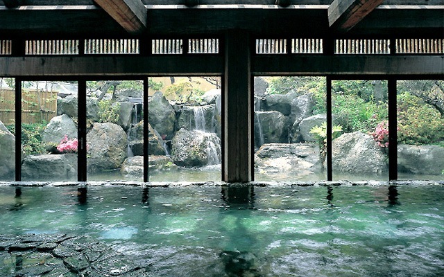 館内に入ると立派な日本庭園のロビーがお出迎えしてくれます。